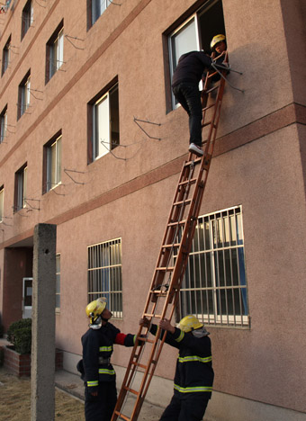 四点左右,我们支部所有成员及其他支部的部分同学在桃八的空宿舍内进行了一次消防疏散演习。模拟火灾发生时的情景。同学们在消防官兵的指导下有序地撤离“火灾现场”,“被困男生”也从云梯顺利爬下逃生,各位消防官兵也尽职尽责,给我们营造了一个几乎真实的画面,使大家感受颇深。