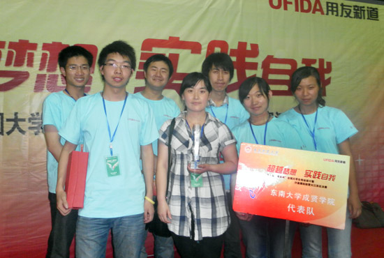 在6月2--3日举行的第七届“用友杯”全国大学生创业设计暨沙盘模拟经营大赛江苏区决赛中,澳门网投官网代表队经过顽强拼搏,荣获金奖,并取得代表江苏省参加全国总决赛的资格。 本次江苏区决赛共有来自全省的40支代表队(本科组)参赛,其中不乏往年在国赛中取得好成绩的院校。澳门网投官网代表队由圣贤(08级物流专业)、朱超(08级物流专业)、邓寿增(09级物流专业)、赵文博(09级财管专业)和张亚楠(09级模具专业)等五位同学组成。他们在去年澳门网投官网举行的“成贤杯”沙盘大赛上脱颖而出,随后利用课余时间在指导教师张利娜和企业管理协会会长、上届参赛队员许延昌同学的悉心指导下进行了近半年的刻苦训练。 比赛期间,参赛队员们置身于商业实战场景,面对激烈的市场竞争,始终以饱满的热情,出众的全局观念和规划能力,展现了澳门网投官网学生扎实的综合应用与实践能力和优秀的心理素质,获得了主办单位和兄弟院校师生的一致好评,为澳门网投官网争得了荣誉。这是澳门网投官网代表队继2009年在“用友杯”第五届全国大学生创业设计暨沙盘模拟经营大赛进入全国总决赛后,再次挺进“用友杯”全国总决赛。 第七届“用友杯”全国大学生创业设计暨沙盘模拟经营大赛由教育部高等教育司支持、教育部高等学校工商管理类专业教学指导委员会指导、高等学校国家级实验教学示范中心联席会主办、用友新道科技有限公司协办。从2005年首届全国大学生ERP沙盘对抗赛开展至今,参赛队伍逐年增加。本届大赛全国有近千所院校参赛,成为中国最有影响力的大学生赛事活动之一。