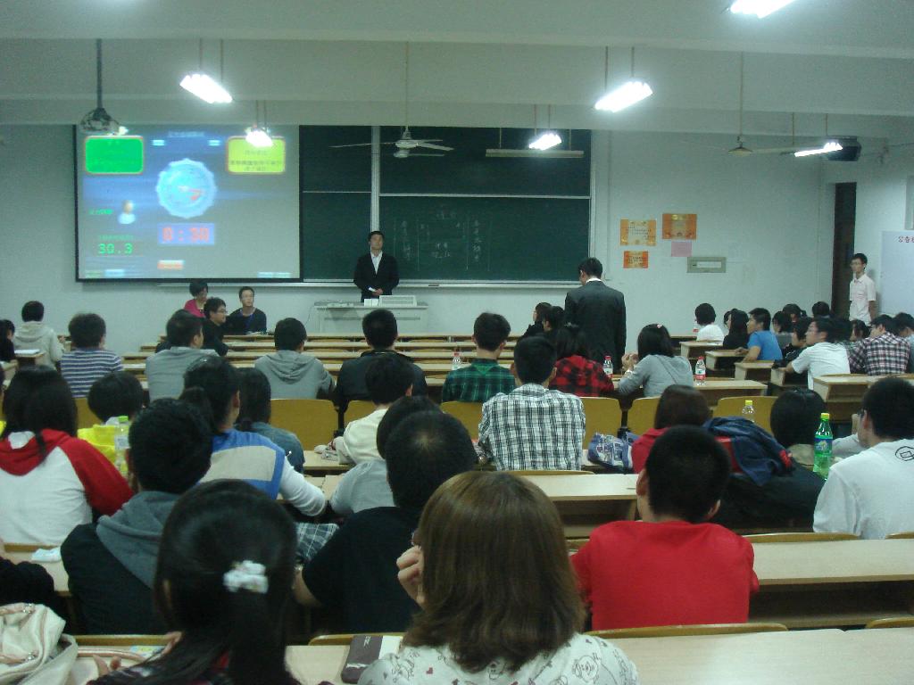 2011年9月29日晚6时,文昌院303,经管系第四届辩论赛初赛在市场营销对财务管理专业的表演赛中拉开帷幕。分团委书记羊栋老师、市场营销与电子商务专业辅导员高健老师、院辩论队队长葛乐、院辩协副主席薛珺、院宣传部部长叶凡、经管系学生会主席曹润基以及副主席夏枢枢等人担任了此次大赛的嘉宾和评委。