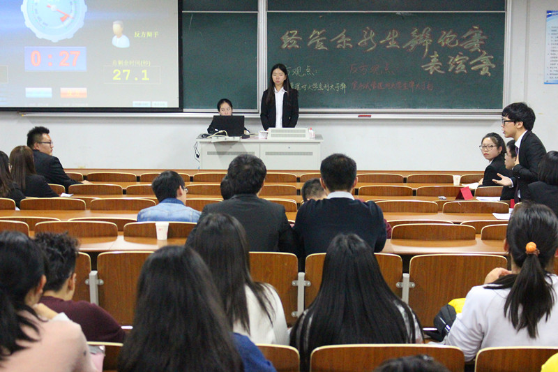 2015年10月21日晚,由我系学生会学习实践部举办的辩论表演赛于文昌院303成功举办。本次辩论赛出席的嘉宾有经管系学生会主席张鑫,经管系学生会秘书长茆大刚,校辩论队主力沈昕,经管系系队队长魏文辉,经管系系队主力杨帅。