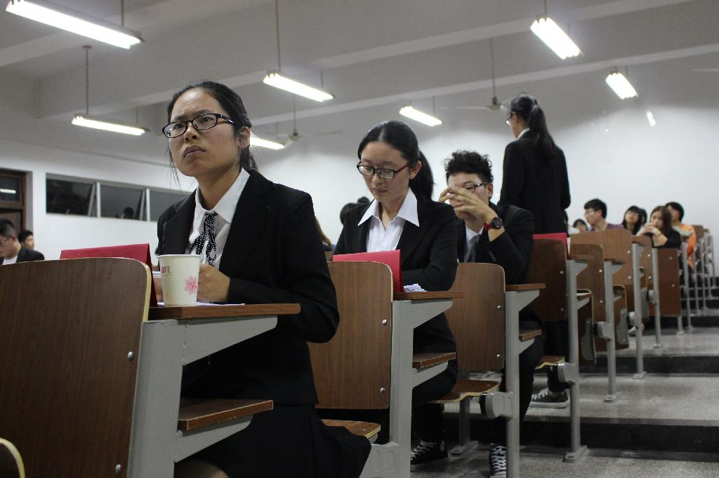 2015年10月25日晚,经济管理系分团委学生会学习实践部举办的第八届经济管理系辩论赛小组赛在文昌院303隆重举行。出席此次辩论赛的嘉宾有:辅导员胡钱胜老师、苏珍晶老师、经济管理系分团委副书记陈杨、秘书长茆大刚、电子工程系现校队主力辩手徐何伟,经济管理系队队长魏文辉、经济管理系现校队主力沈昕。