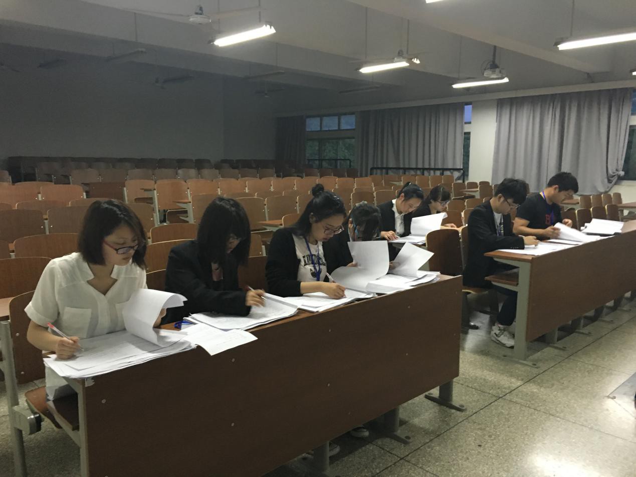 本届会计职业技能大赛初赛以现场考试的形式,综合考察参赛选手关于会计基础和财经法规方面的知识。考试现场井然有序,工作人员细致效率地分发着四套不同的试卷,参赛选手认真安静地答题。考试环节结束后,由办公室成员紧张忙碌地批改试卷,并对试卷进行复核以保证批改准确性。最终,由65名同学从初赛中脱颖而出顺利进入复赛。
