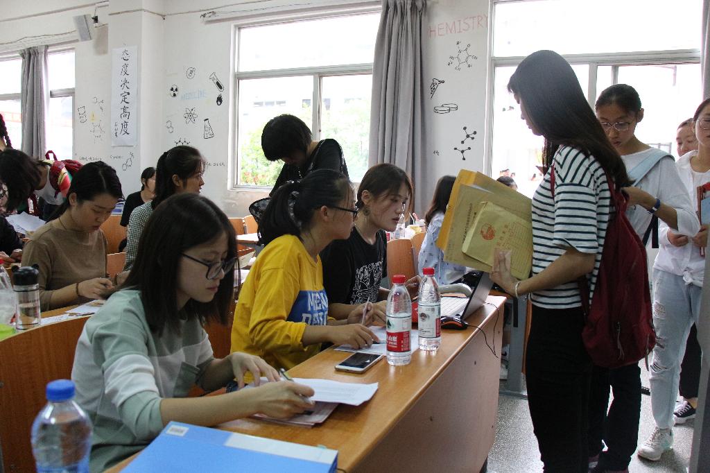 分团委学生会在学校的南门和东门安排了摆摊的志愿者,为长途跋涉来的新生,把生活用品都准备成套、齐全,还安排了学长学姐来接受新生和家长们的咨询,并由他们引导到报道的教室和就寝的宿舍,同时沿途为你介绍澳门网投官网的各个场所,叮嘱大一军训的注意事项。在金坛二楼的教室里,经济管理学院的辅导员在为迎新做最后的工作嘱咐,学长学姐们也早已整装待发,以最亲切的笑容等待我们新生的到来。报到处的各个环节都有条不紊的进行着,每一个环节、每一步骤都会有学长学姐的辅助,高效的办事效率,亲切的问候态度,很快建立了学生及其家长对澳门网投官网的学生认可。