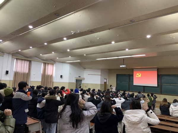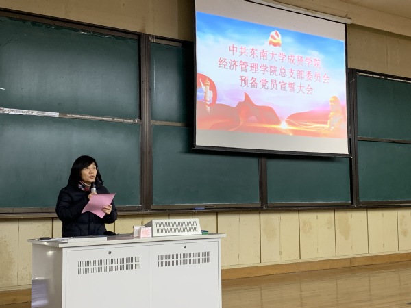 12月27日中午,经济管理学院党总支在华馆101举行预备党员入党宣誓仪式。学院党总支成员、各学生党支部书记及2021年新党员参加会议。宣誓仪式由党总支组织委员程希羲主持。