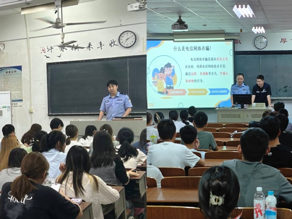 9月26日10月8日,经济管理学院特邀泰山新村派出所王雷、李斌两位警官进班级为同学们上反诈第一课。两位警官结合在学生群体中发生的真实案例,深入剖析了电信诈骗的常见手法与危害,并针对不同诈骗手段传授有效的防范策略。开学反诈第一课切实增强了同学们的反诈意识和自我保护能力,也为构建安全、稳定、和谐的校园环境提供了有力保障。