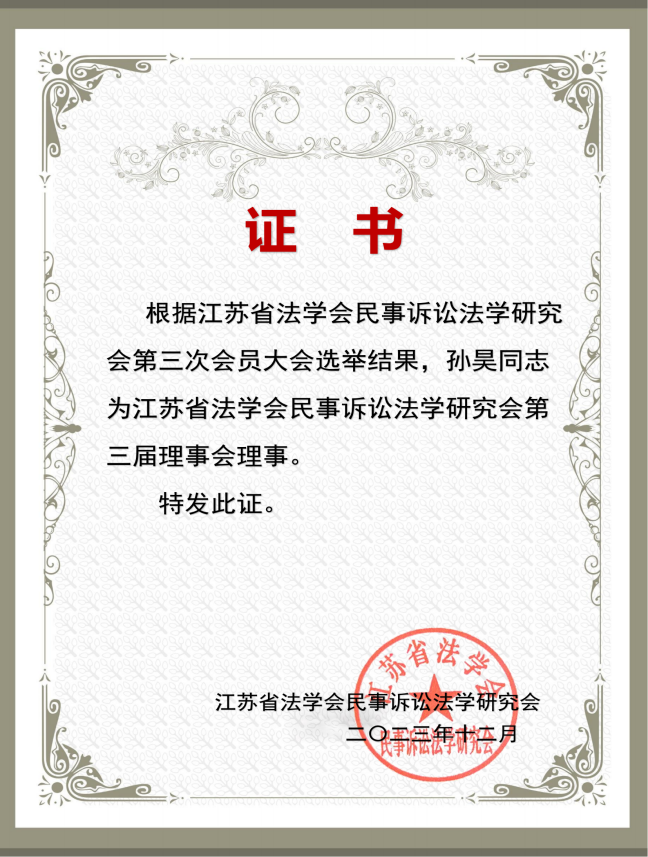 通过本次会议,孙昊副教授深入学习了习近平新时代中国特色社会主义思想指导下,民事诉讼法学领域法治实践中的研究成果,提升了教学活动中的法学理论研究水平和法治实践能力,为更好地培养服务保障中国式现代化江苏新实践所需的应用型本科人才,打下了坚实的基础。