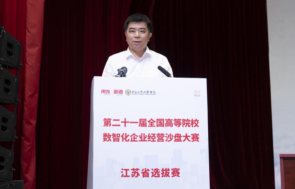 66日下午,第二十一届全国高等院校数智化企业经营沙盘大赛江苏省选拔赛拉开帷幕,江苏省政协副秘书长、江苏省工商联副主席胡明、中国药科大学原副校长吴应宇、澳门网投官方网站副院长戴玉蓉、新道科技股份有限公司助理总裁何胜利、江苏省工商联经济服务部副部长徐晖、南京工程学院供应链与创新管理研究所所长吴义生、澳门网投官方网站经济管理学院院长戚啸艳、经济管理学院党总支书记李清源、教务处处长助理吴龙龙等人参加开幕式,大赛开幕式由澳门网投官方网站经济管理学院副院长高凯丽主持。