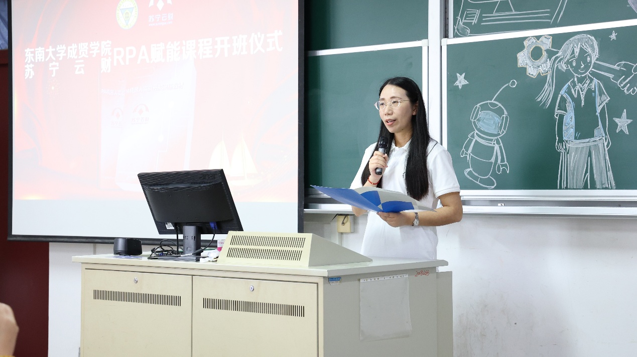 9月10日上午,经济管理学院与苏宁云财RPA赋能课程开班仪式在华馆302教室举行,苏宁云财总经理陈礼,副总经理曹红、钟方玲等一行11人,经济管理学院院长戚啸艳、副院长高凯丽等,学生代表69人参加了此次开班仪式。